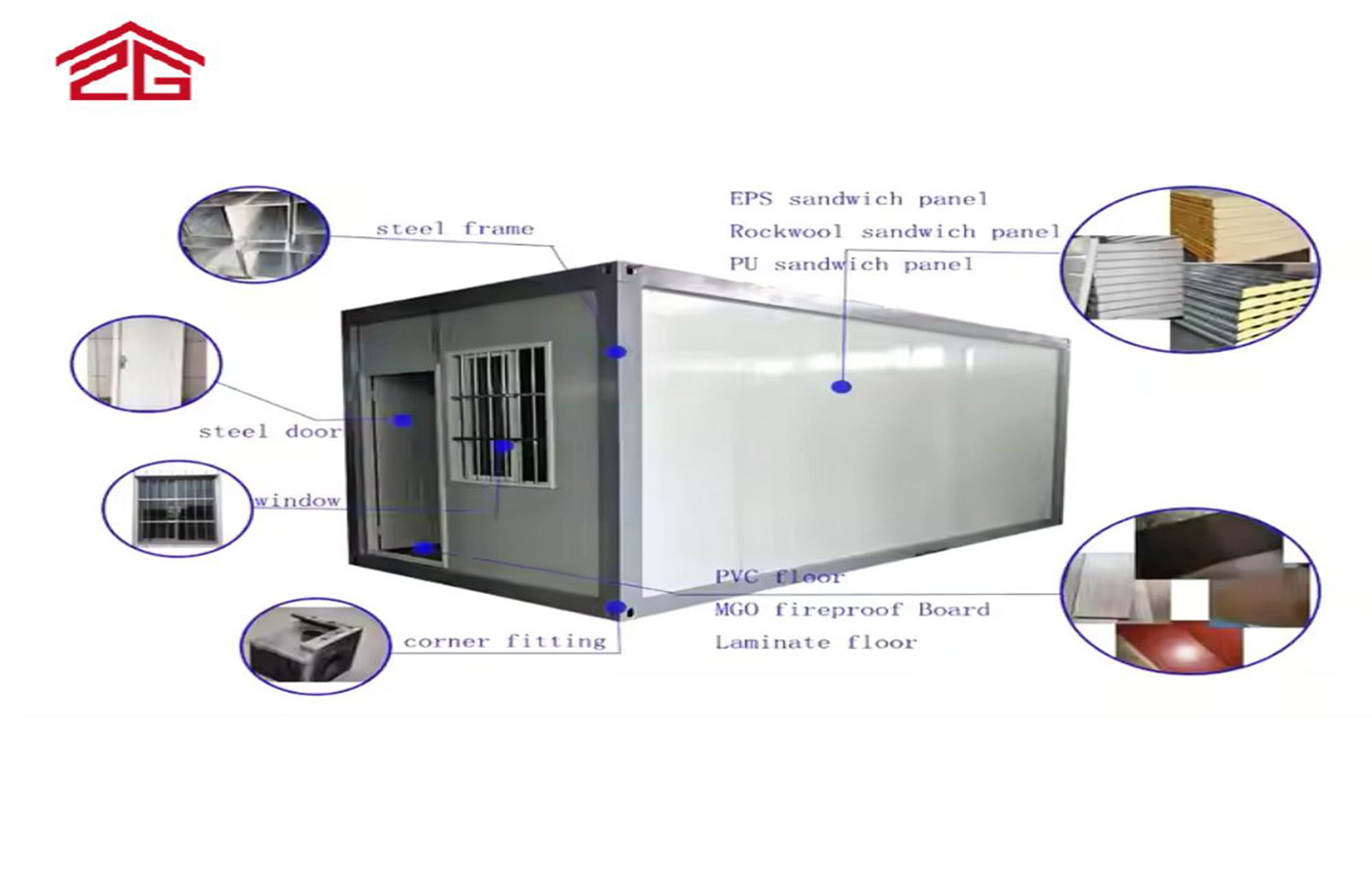 Dak en muur: 0,5 mm ijzeren plaat 50 mm EPS-isolatielaag